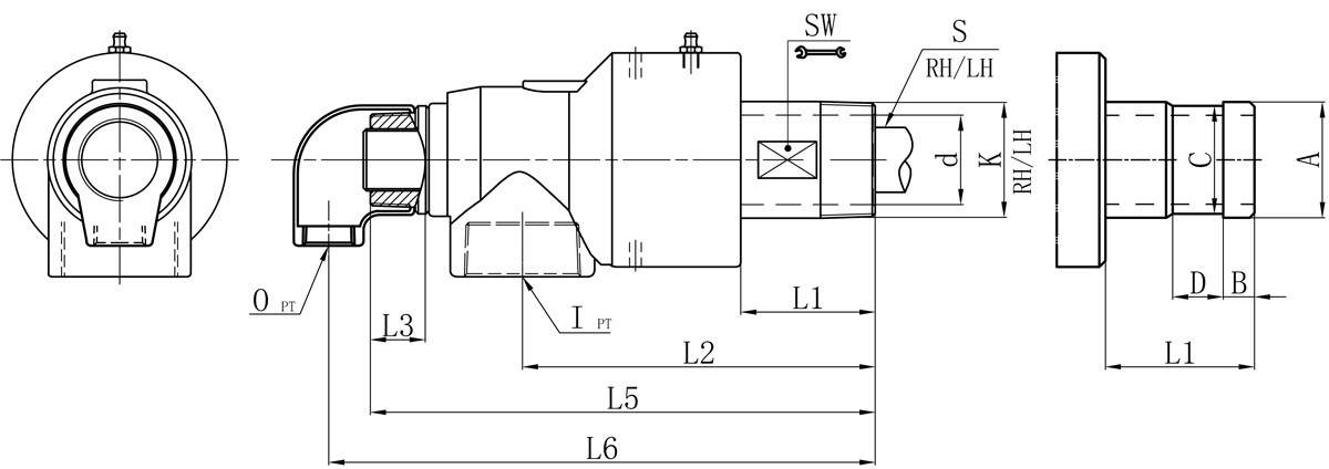 | Model | K | I | O | S | S1 | d | L1 | L2 | L3 | L5 | L6 | SW | 法蘭式外管尺寸對照表 | |||