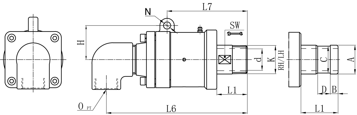 | Model | K | O | d | L1 | L6 | L7 | N | H | SW | 法蘭式外管尺寸對照表 | |||