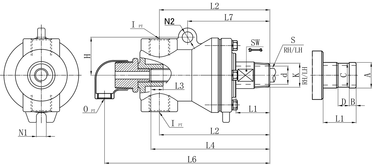 | Model | K | I | O | S | d | L1 | L2 | L3 | L4 | L6 | L7 | N1 | N2 | SW | H |