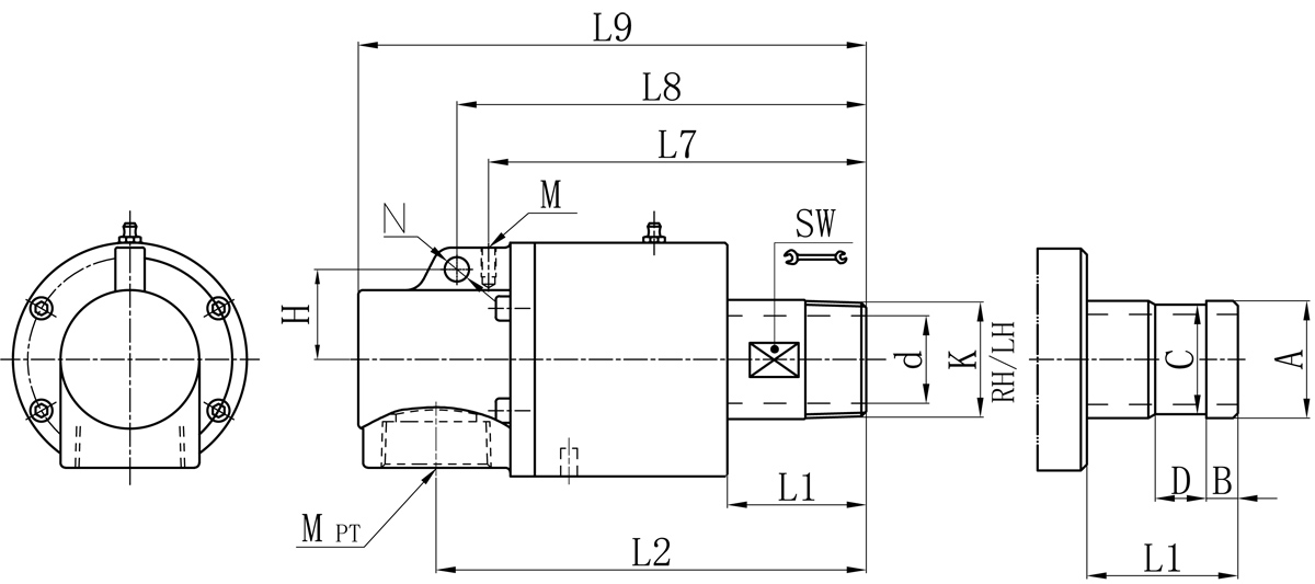 | Model | K | M | d | L1 | L2 | L7 | L8 | L9 | M | N | H | SW | 法蘭式外管尺寸對(duì)照表 | |||