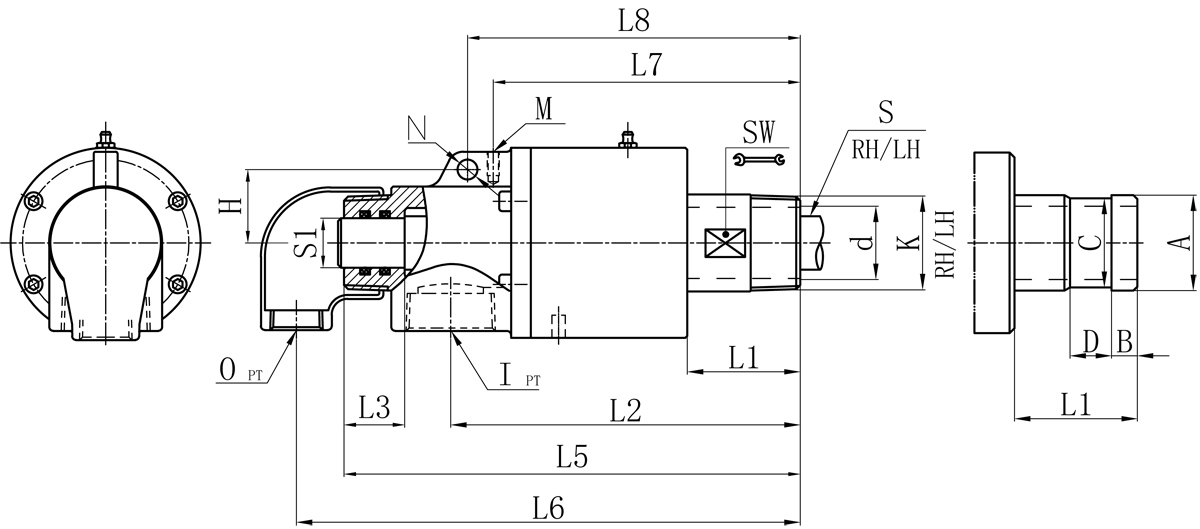 | Model | K | I | O | S1 | d | L1 | L2 | L3 | L5 | L6 | L7 | L8 | M | N | H | SW | 法蘭式外管尺寸對照表 | |||