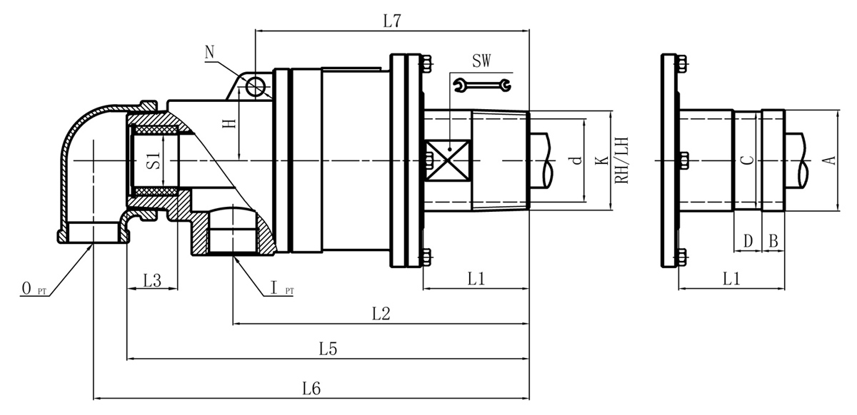 | Model | K | M | I | O | S | S1 | D1 | L1 | L2 | L3 | L5 | L6 | L7 | L8 | N | SW | H | 法蘭式外管尺寸對(duì)照表 | |||